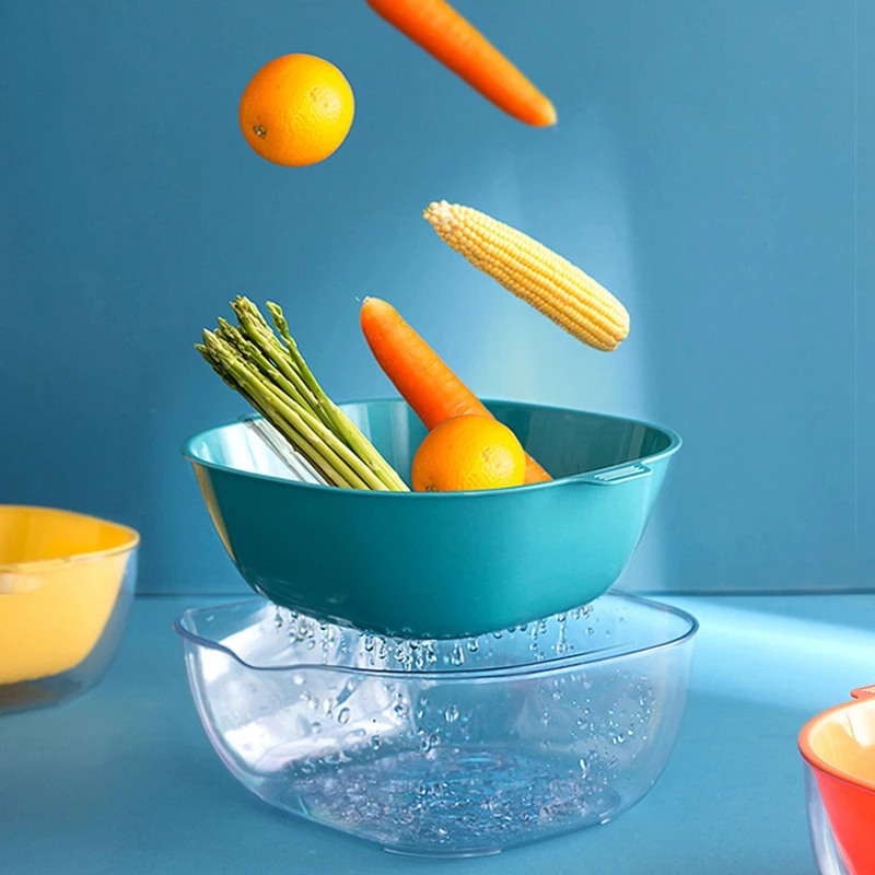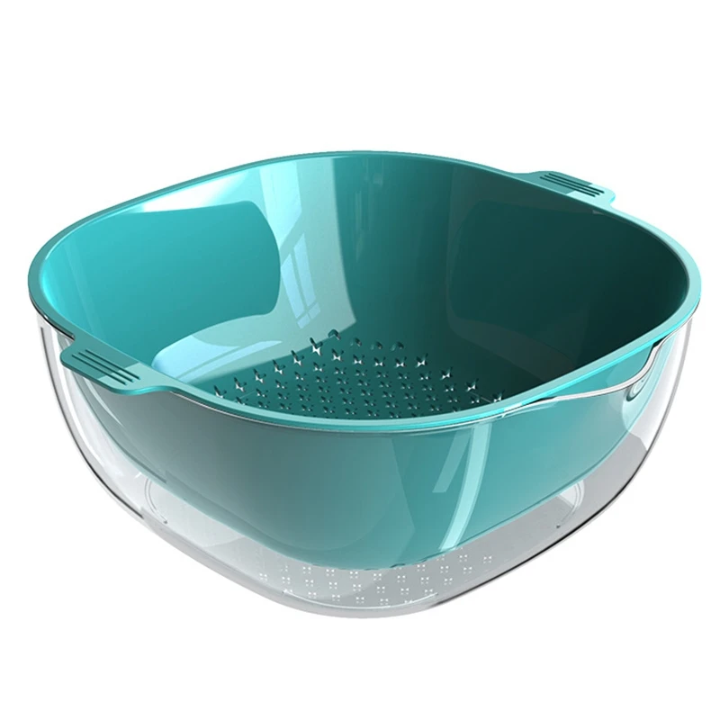 Plastic Vegetable Strainer with Handle Kitchen Colander Double Layered Fruit Drain Basket Strainer