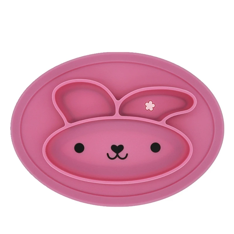 Baby Feeding Dishes Silicone Infant Bowls Plate Tableware Kids Food Holder Tray Cartoon Rabbit Food