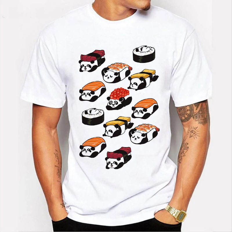 HIGH QUALITY New 2019 Sushi Panda Short Sleeve O-Neck T-shirt Funny Food Printed Men Tops Novelty Cool Tee shirt