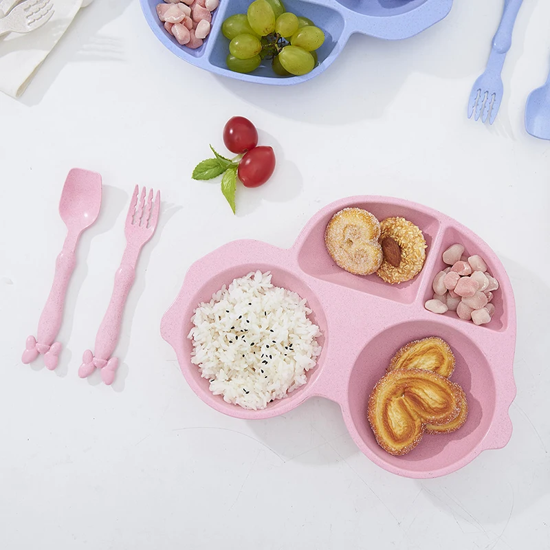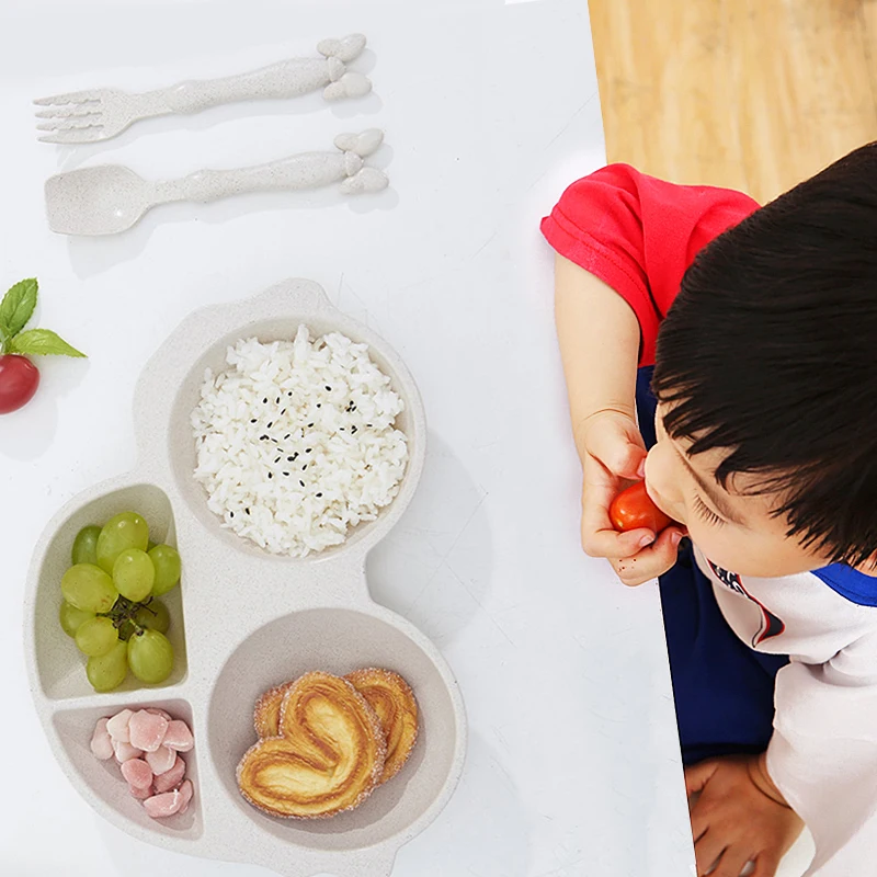 BEST QUALITY 3pcs Children's Tableware Set Bowl+Spoon+ Fork Wheat Straw Material Car Shape Baby Anti-scald Drop