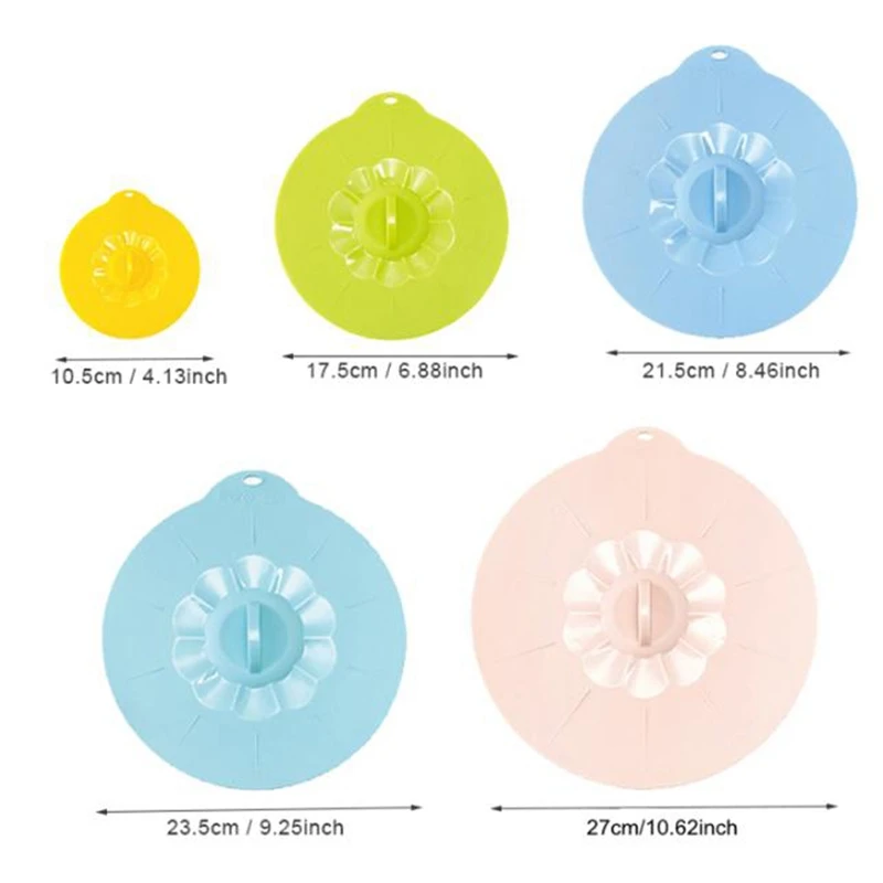 Review 5 Pcs/Set Household Reusable Food Grade Silicone Bowl Seal Lid Heat-Resistant Pot Cover Fresh-Keepi