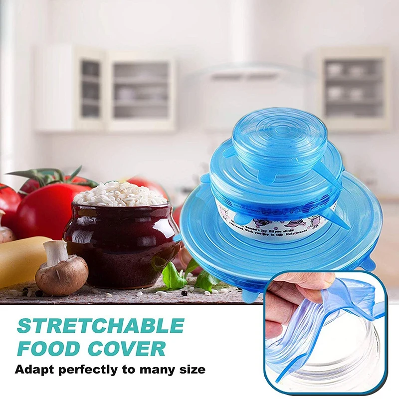 Silicone Flexible Stretch Lids Blue the Stretchable Instalids Silicone Cover Lid to Fit Multiple Co